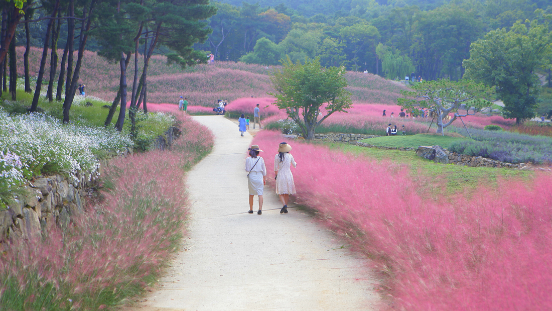 - 환상적인 핑크뮬리 군락: 가을이 되면 넓은 평지에 핑크뮬리가 가득 피어나 온 세상을 분홍빛으로 물들입니다. 부드러운 솜털 같은 핑크뮬리들이 바람에 흔들리는 모습은 마치 동화 속 한 장면을 보는 듯한 착각을 불러일으킵니다. 이곳의 핑크뮬리 군락은 규모가 상당해, 어느 각도에서 찍어도 '인생샷'을 건질 수 있는 최고의 포토 스폿입니다.