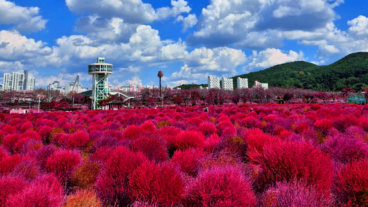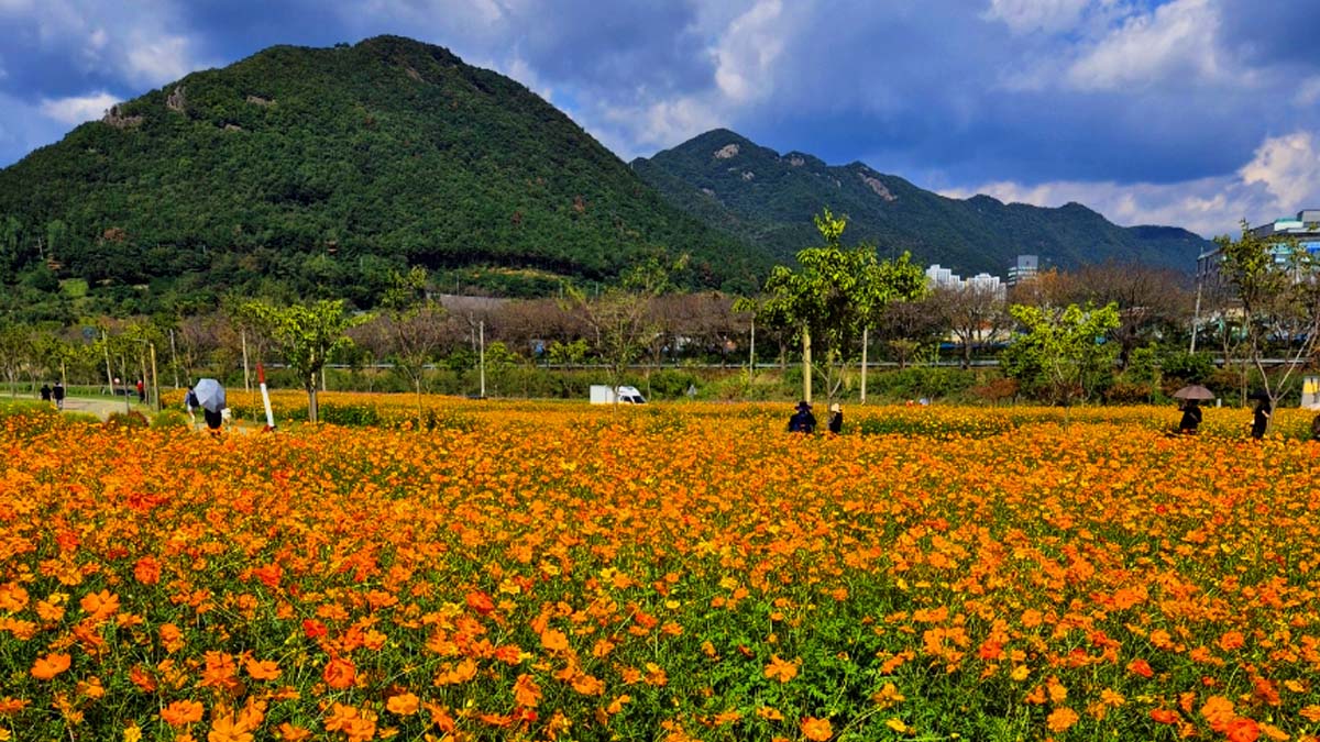 - 소국 (小菊): 아기자기하고 다양한 색깔의 소국은 공원 곳곳에 화려한 카펫처럼 깔려 있어 발걸음마다 기분 좋은 향기와 색감을 제공합니다. 노란색, 주황색, 보라색 등 다채로운 색상이 가을의 풍요로움을 표현합니다.