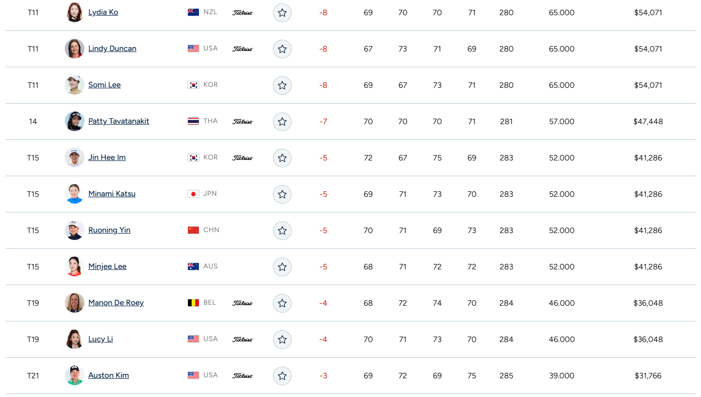 2025년 5월 11일, 미국 뉴저지주 저지시티의 리버티 내셔널 골프 클럽에서 열린 LPGA 투어 미즈호 아메리카스 오픈(Mizuho Americas Open) 최종 라운드에서 태국의 지노 티티쿨(Jeeno Thitikul)이 우승을 차지했습니다. 이번 승리는 그녀의 시즌 첫 승이자 LPGA 통산 5번째 우승으로, 최종 합계 17언더파 271타를 기록하며 프랑스의 셀린 부티에(Celine Boutier)를 4타 차로 제쳤습니다. 세계 랭킹 2위인 티티쿨은 이번 우승으로 시즌 상금 110만 달러를 돌파하며, 레이스 투 CME 글로브 순위에서 선두로 올라섰습니다. 한편 2R 선두에 올랐으나 3R부진으로 순위가 하락했던 이소미 선수는 마지막 날 1타를 줄려 최종 8언더파를 기록 공동 11위에 올라 TOP 10에 이름을 올리지 못했습니다.