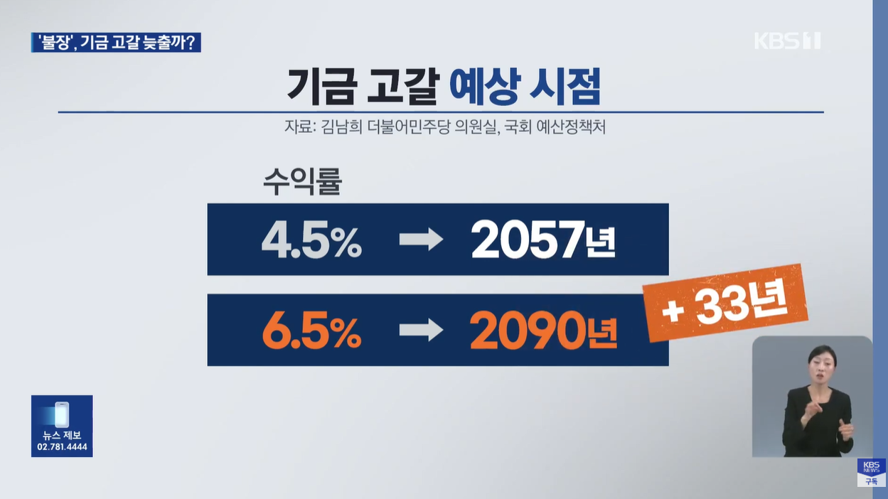 - 당초 예상 시점: 정부가 당초 수익률 4.5%를 가정하고 예상했던 기금 고갈 시점은 2057년이었습니다.