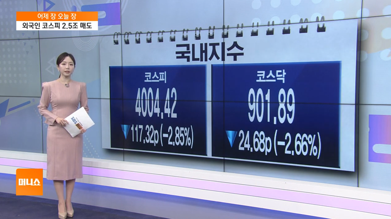 - 환율 급등: 정규장 마감 시간 달러/원 환율은 11원 50전 급등하며 1,449원 40전에 거래를 마쳐 7개월 만에 최고치를 기록했습니다. 장중 한때 1,450원까지 터치하며 외국인 매도세를 더욱 부추겼습니다.