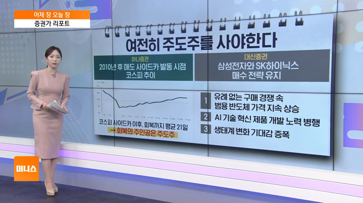 - 회복의 주인공: 과거 코스피 매도 사이드카 발동 이후 직전 수준 회복까지 평균 21일이 소요되었으며, 이 회복의 주인공은 다시 한번 SK하이닉스와 삼성전자 위주의 반도체 업종이 될 것이라고 밝혔습니다.