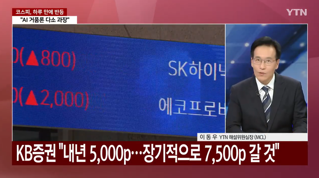 과연 이번 반등이 대세 상승장의 '쉼표'일까요, 아니면 다시 폭락으로 이어질 불안한 움직임일까요? YTN의 심층 분석을 바탕으로, AI 거품론의 실체 분석, KOSPI 5,000p 돌파 전망, 정부 당국자의 논란 발언, 그리고 1만 배 성장의 엔비디아 사례까지 완벽하게 해부합니다.