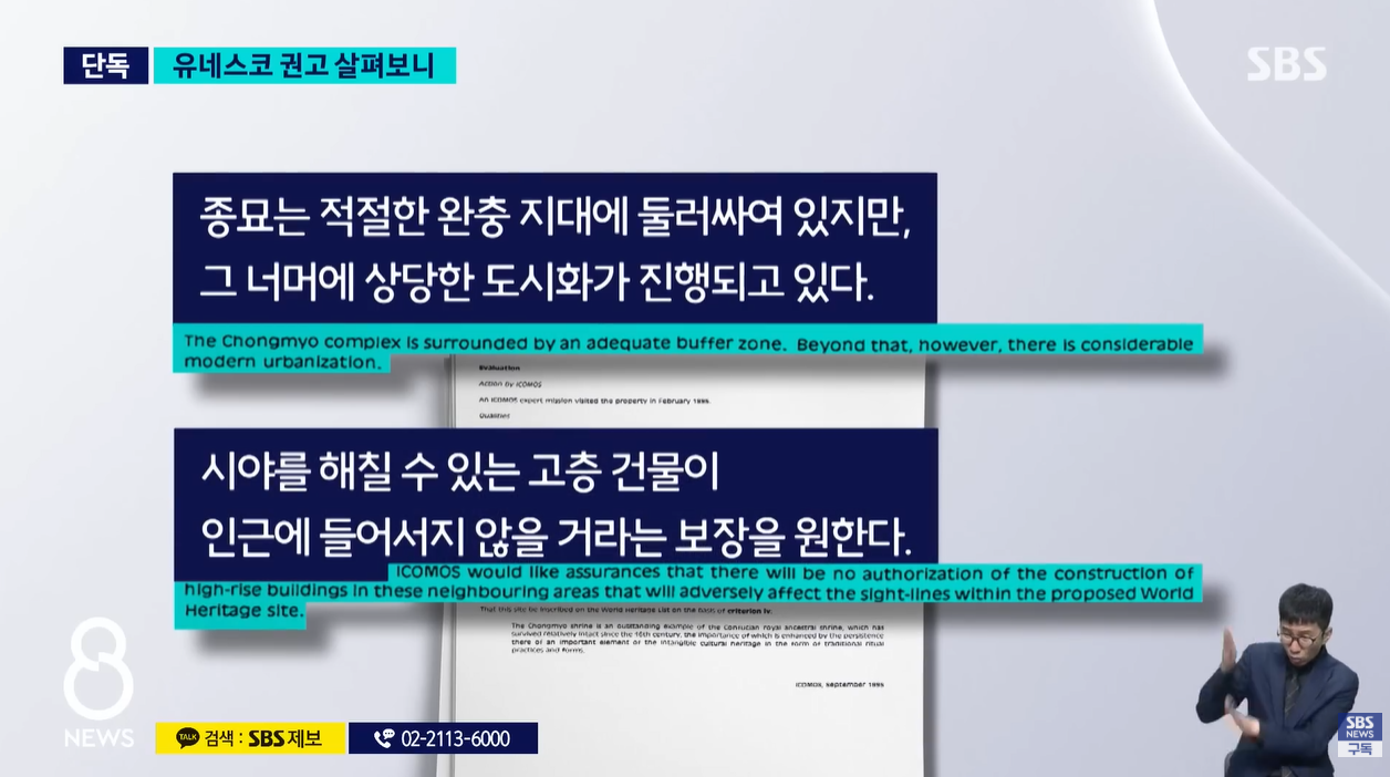- 내용의 핵심: ICOMOS는 "종묘가 완충지대에 둘러싸여 있지만, 그 너머에 상당한 도시화가 진행되고 있다"고 지적했습니다.