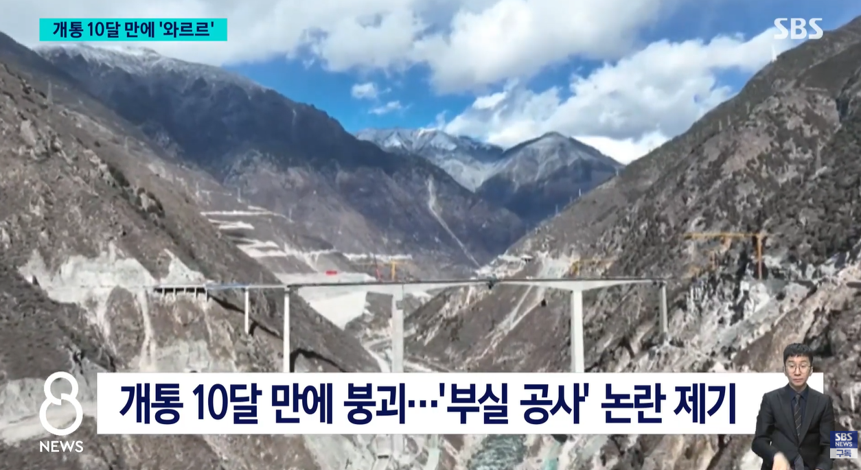 이번에 붕괴된 교량은 홍치대교로, 중국 중부와 티베트를 잇는 중요한 통로였습니다. 당국은 '대규모 산사태'를 원인으로 지목하고 있지만, 개통된 지 채 1년도 되지 않아 발생한 사고인 만큼 '부실 공사'에 의한 인재(人災)라는 비난의 목소리가 거세지고 있습니다.