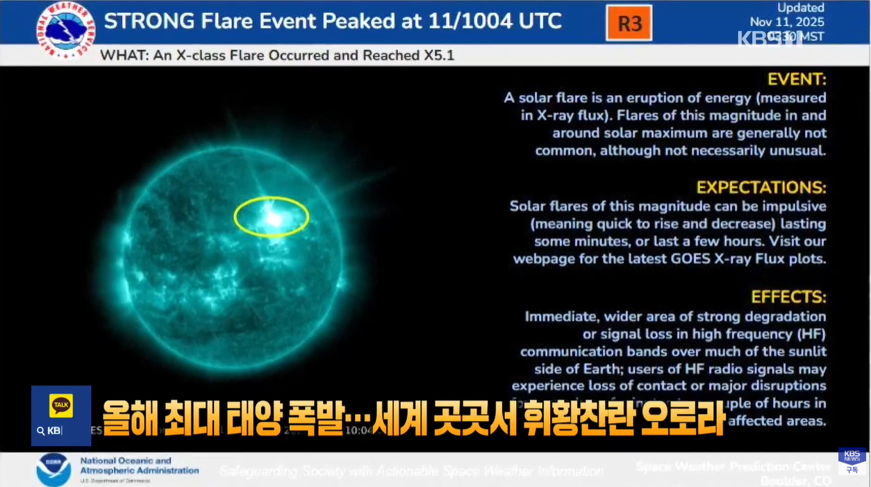 - NOAA 등급: 미국 해양대기청(NOAA)에 따르면, 이번 태양 폭풍은 위험도를 나타내는 5등급 중 두 번째로 강한 규모로 측정되었습니다.