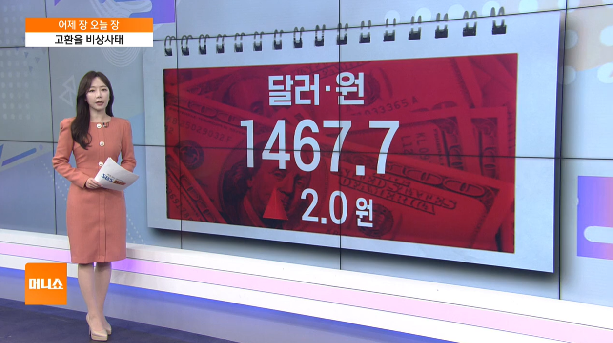 - 상승 마감: 어제 환율은 정규장 마감 시간 기준 2원 오른 1,467원 70전에 거래를 마쳤습니다. 장중에는 1,475원 40전까지 오르기도 했습니다.