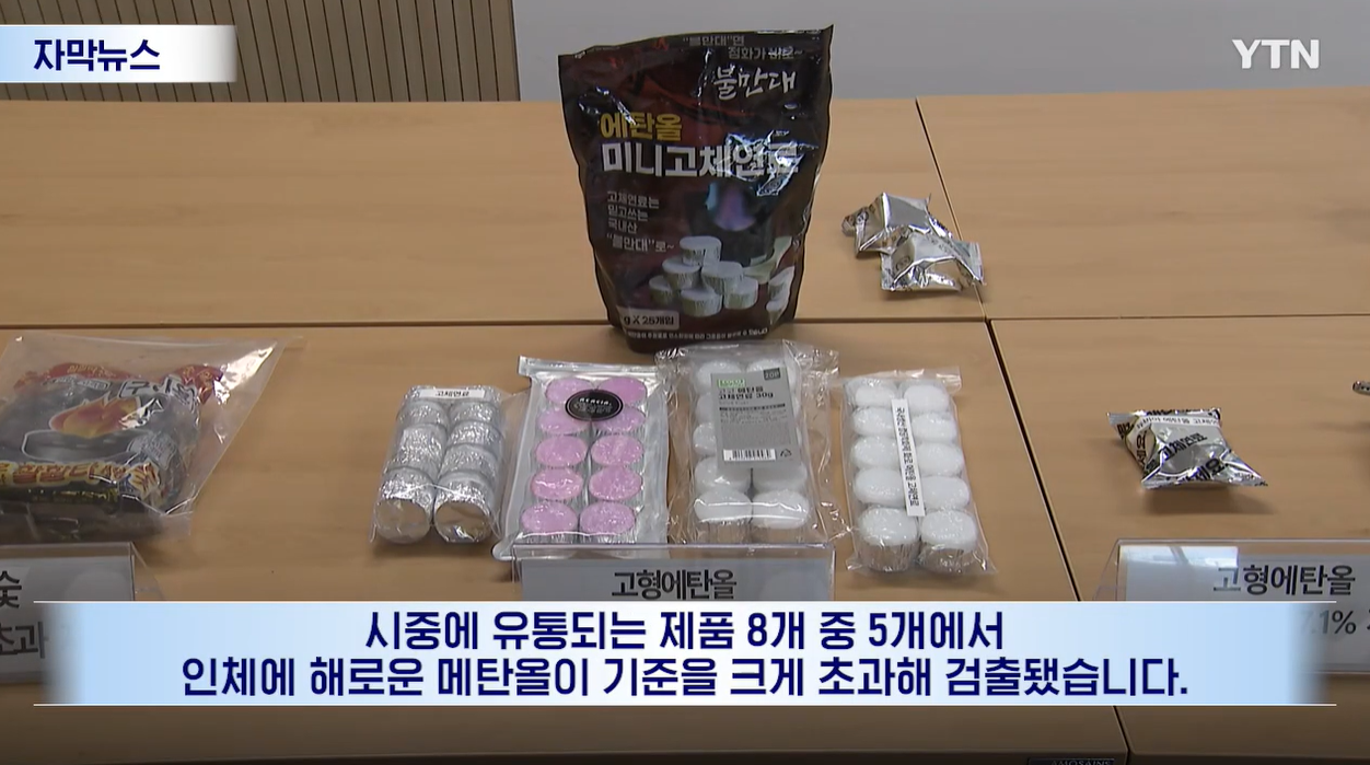 ⚠️ 캠핑족 필독! 고체 연료 56% 메탄올, 성형 숯 비소 9배 초과 실태
