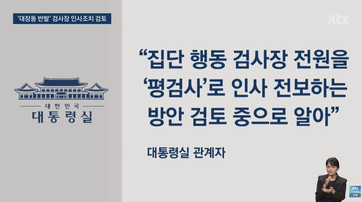 - 공개 이의 제기: 전국 지검장 18명은 검찰 내부 시스템에 글을 게시하며, 검찰총장 직무 대행에게 대장동 사건 항소 포기의 '법적·경위적 근거'를 설명해 달라고 요청했습니다.