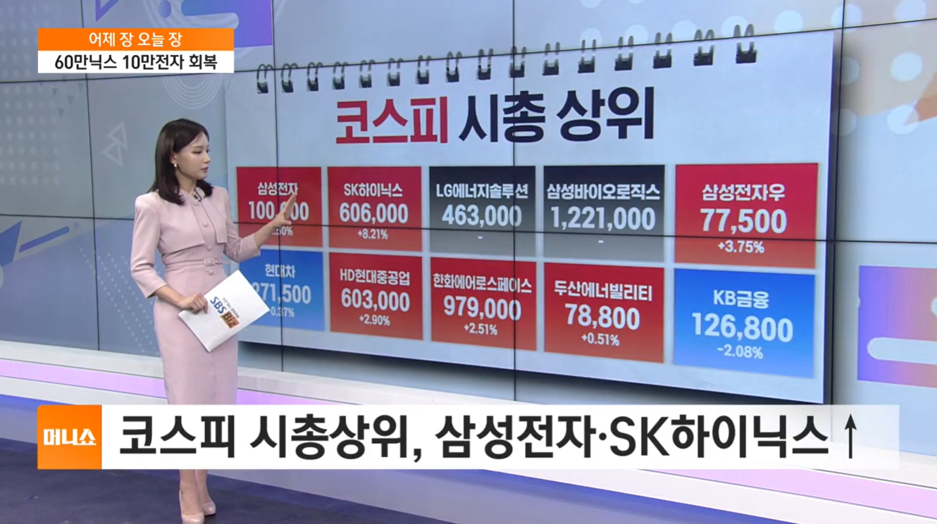 - 삼성전자 & SK하이닉스: 각각 10만 전자와 60만 닉스를 회복했습니다.
