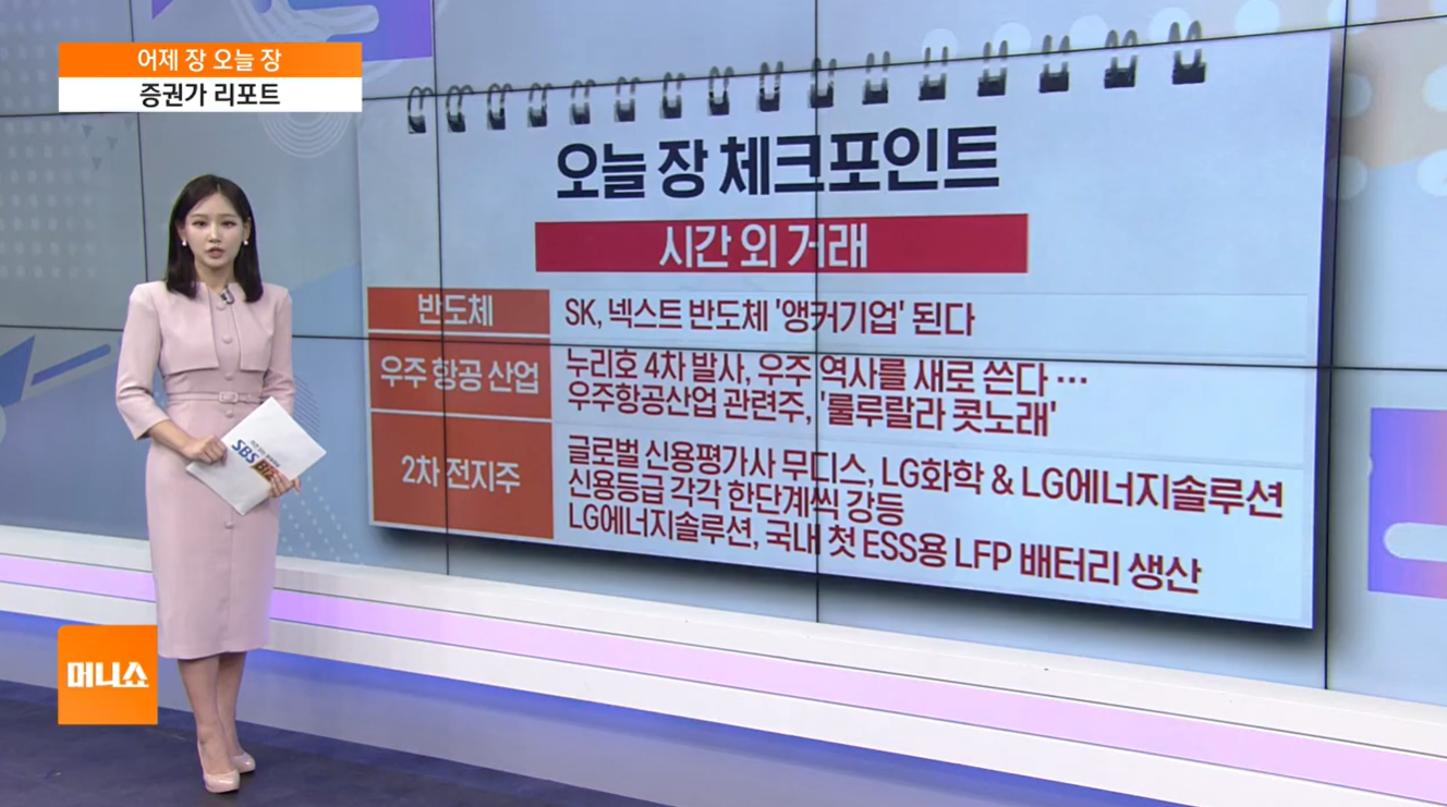 - 민간 주도 전환: 4차 발사는 정부와 하나 에어로스페이스가 같이 준비하는 첫 사례로, 정부 주도에서 민간 주도로 전환하는 새로운 시대의 첫 걸음이 될 거란 기대감에 하나 에어로스페이스는 시간외 거래에서 3% 가까이 상승했습니다.