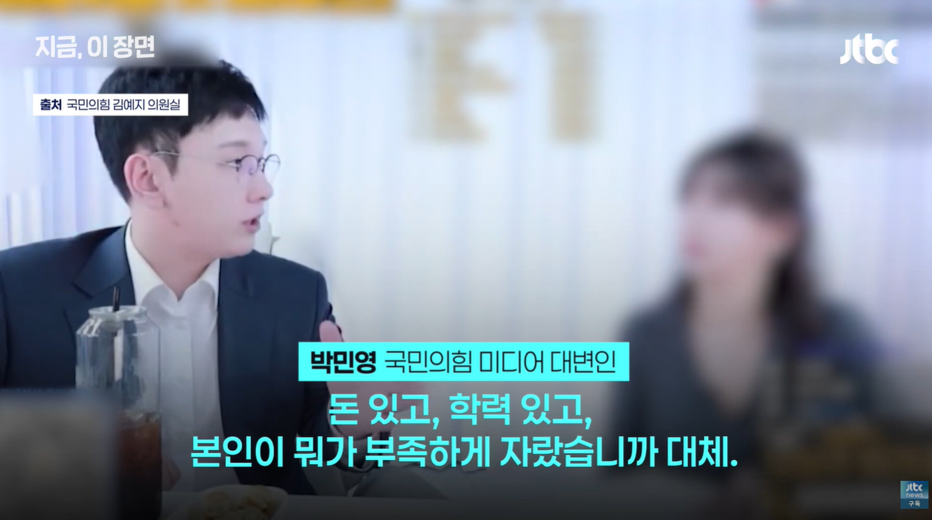 - 배경 및 학력 문제 제기: 박민영 씨는 김혜지 씨에 대해 "막말로 한 김혜지 같은 사람이 눈 불편한 거 말고는 기득권이에요"라고 주장했습니다. 이어서 "돈 있고 학력 있고"를 언급하며, 김혜지 씨가 가진 시각적 불편함 외의 요소들, 즉 경제적·사회적 배경은 오히려 주류 사회의 기득권층에 속한다고 평가했습니다.