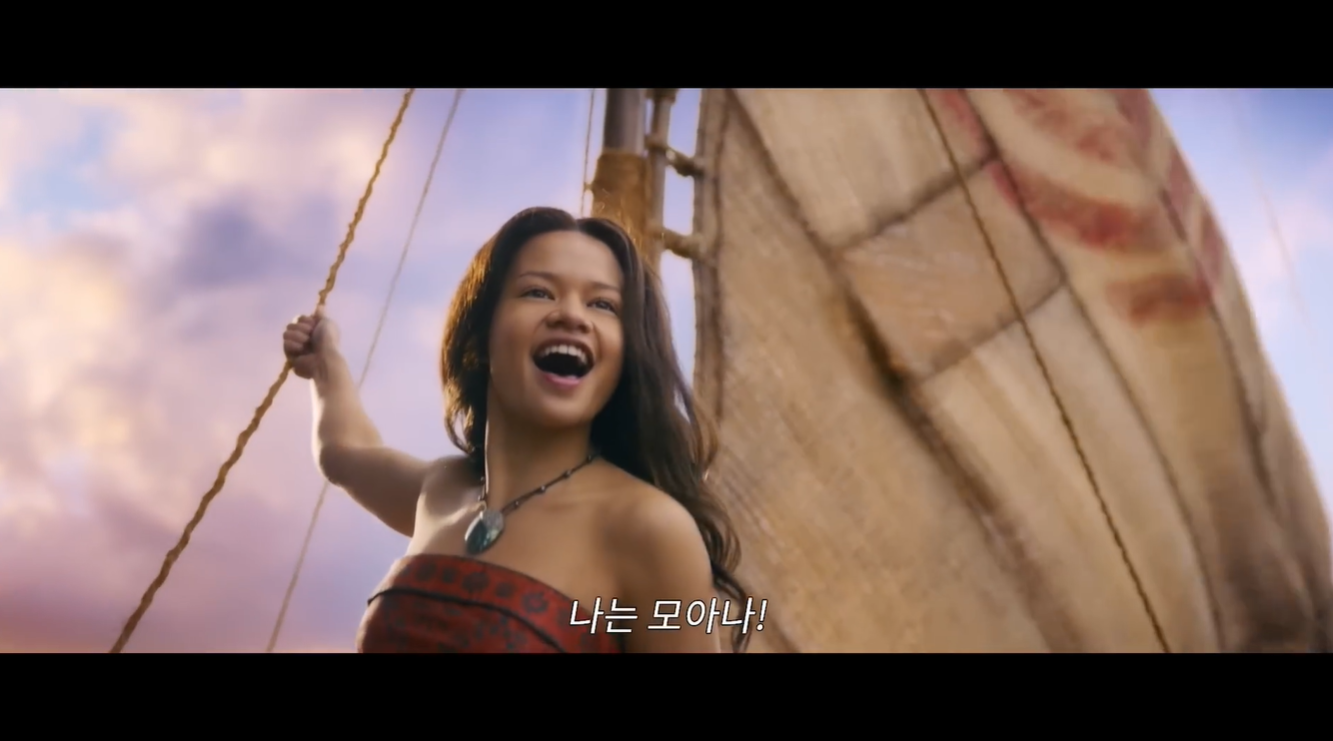 - 완벽한 싱크로율: 예고편에서는 모아나로 완벽하게 변신한 배우 캐서린 라가이아의 모습이 최초로 공개되어 이목을 집중시켰습니다 [참고: 캐서린 라가이아].