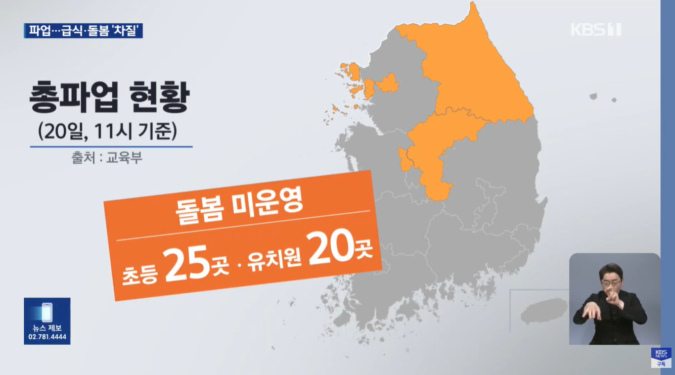 - 돌봄 교실 마비: 전국적으로 초등학교 25곳과 유치원 20곳이 돌봄 교실을 운영하지 못했습니다.