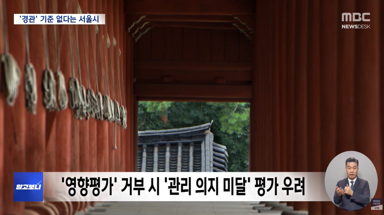 이와 관련하여, 서울시는 공식 입장을 통해 "종묘가 세계 문화유산에 등재될 당시 경관 보호에 대한 명확한 기준이 없었다"며 고층 건물 건설에 문제가 없다는 취지의 주장을 펼쳤습니다. 심지어 종묘의 세계유산 등재와 경관은 아무 관계가 없는 것처럼 비춰지기도 했습니다.