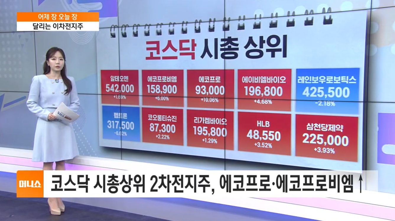 코스닥 시가총액 상위단에서는 에코프로 형제의 강세가 단연 눈에 띄었습니다.
