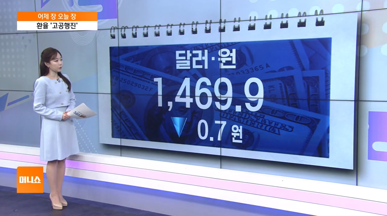 어제 외환 시장에서 환율은 약보합을 기록하며 장 마감 시점에는 70전 내린 1,469원 90전에 거래를 마쳤습니다.