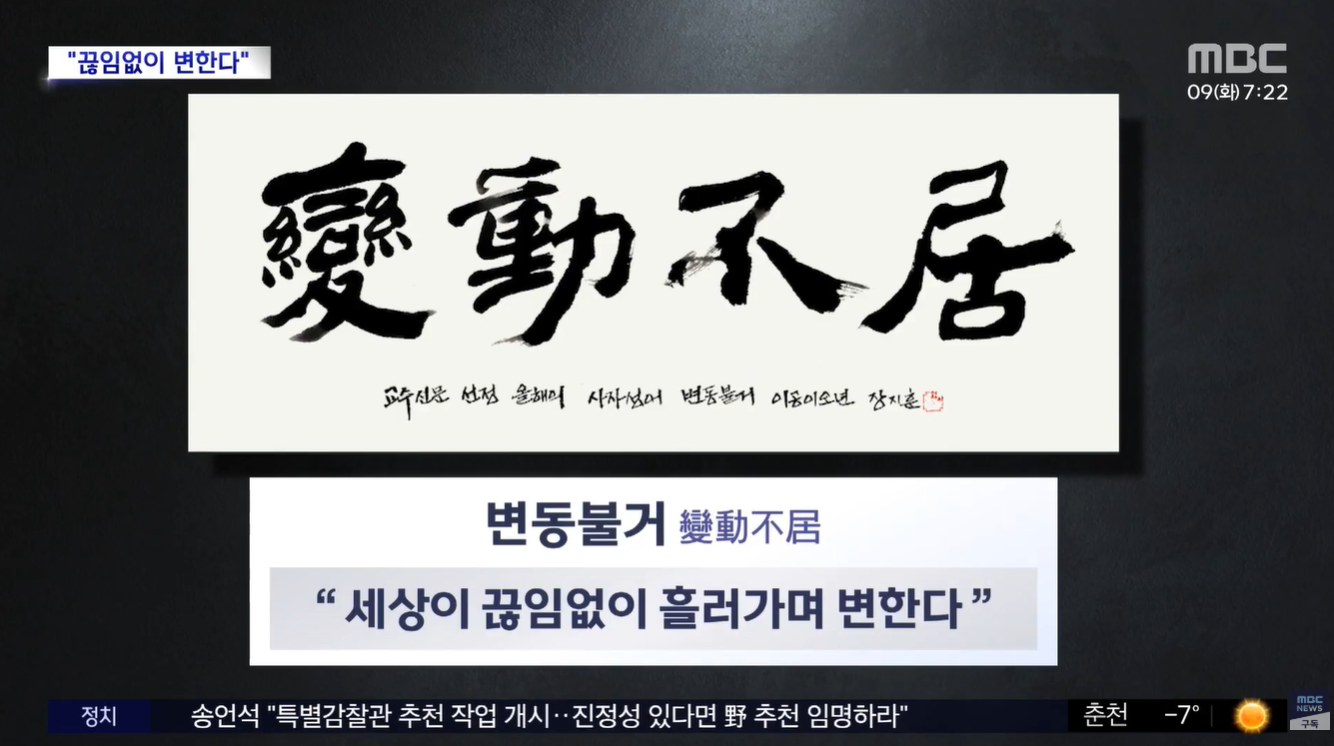 올해의 사자성어로 선정된 '변동불거(變動不居)'는 그 이름처럼 네 글자 속에 '끊임없는 변화'라는 강력한 의미를 담고 있습니다.