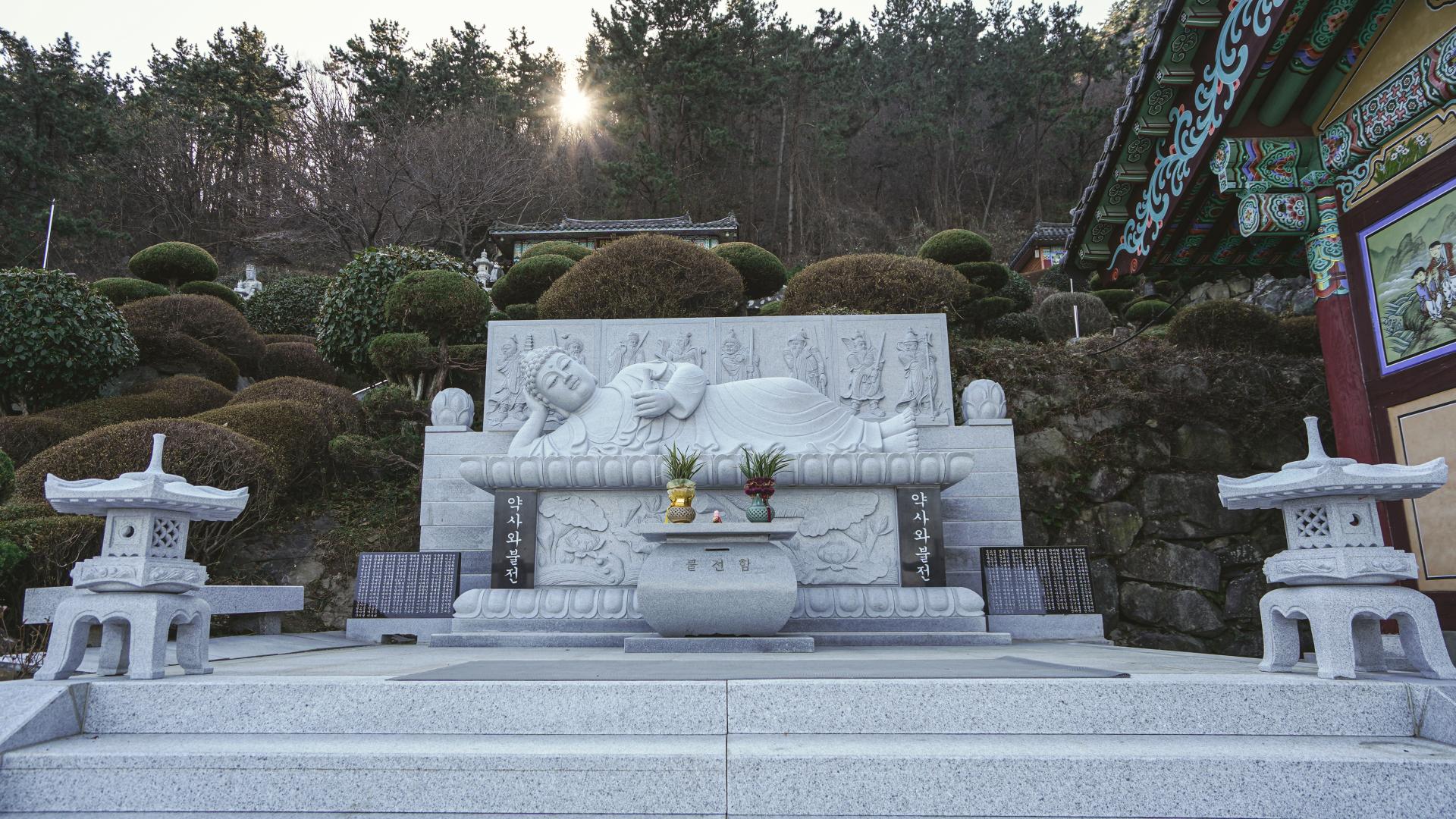 일주문을 통과한 후 곧바로 눈앞에 나타나는 것은 사찰의 고요한 분위기를 상징하는 듯한 와불(臥佛), 즉 누운 부처님의 모습입니다.