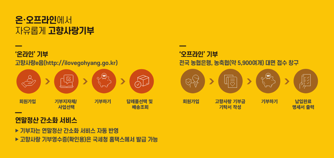 - 온라인: 고향사랑e음 포털 (ilovegohyang.go.kr)