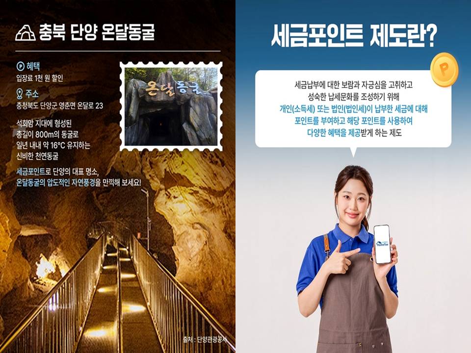 제부도 해상케이블카, 단양의 스카이워크, 그리고 천연 동굴인 온달동굴까지. 이처럼 전국 각지의 인기 명소에서 세금포인트를 활용한 할인 혜택을 누릴 수 있다는 것은 성실한 납세가 단순한 의무를 넘어 실질적인 '생활 속 재테크'로 이어지고 있음을 의미합니다.