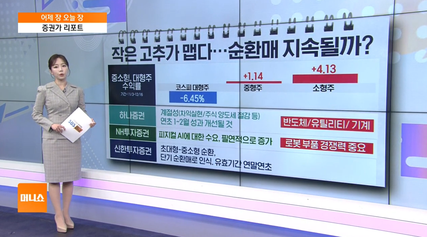 - 하나증권 분석: 빅테크 주가 조정은 계절적 요인이 크며, 연초 1~2월에는 다시 반도체와 기계 업종이 주도주 지위를 회복할 것으로 내다봤습니다.