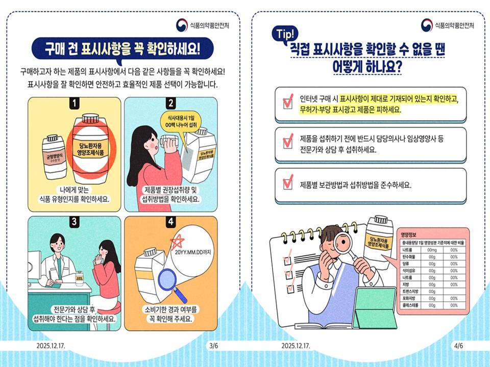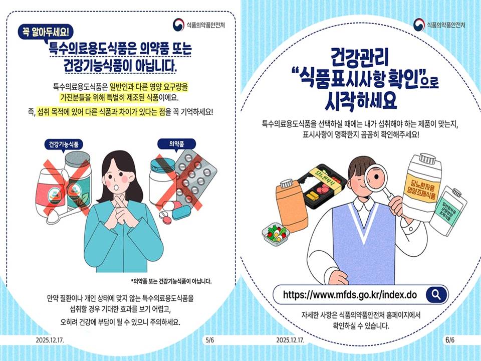 환자의 회복을 돕는 든든한 조력자, 특수의료용도식품! 오늘부터는 "표시사항 확인"으로 더욱 똑똑하고 건강하게 선택해 보세요. 🩺🍱💙