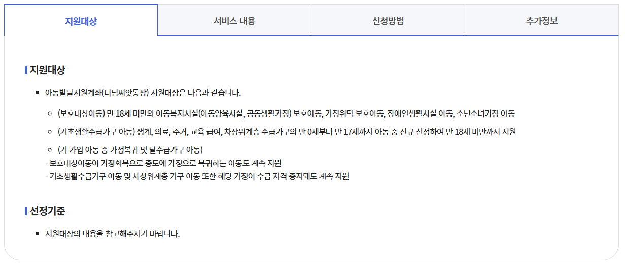 - 가입 연령: 만 18세 미만까지 가입이 가능하며, 지원은 만 18세까지 지속됩니다.
