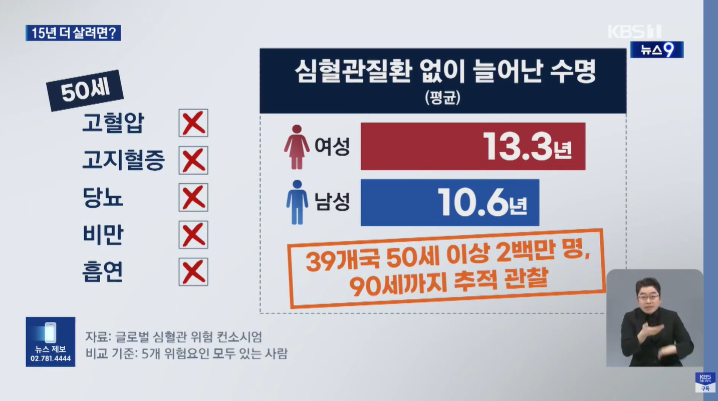 결국 50세에 받은 건강 성적표가 내 남은 생의 10년 이상을 결정짓는 핵심 지표가 되는 셈입니다.