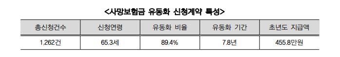 사망보험금 유동화 제도는 자산은 있지만 당장 쓸 현금이 부족한 시니어 세대에게 매우 실질적인 도움이 되는 제도입니다. 지난 10월 도입 이후 이미 1,200건이 넘는 신청이 몰릴 만큼 뜨거운 반응을 얻고 있는데요.