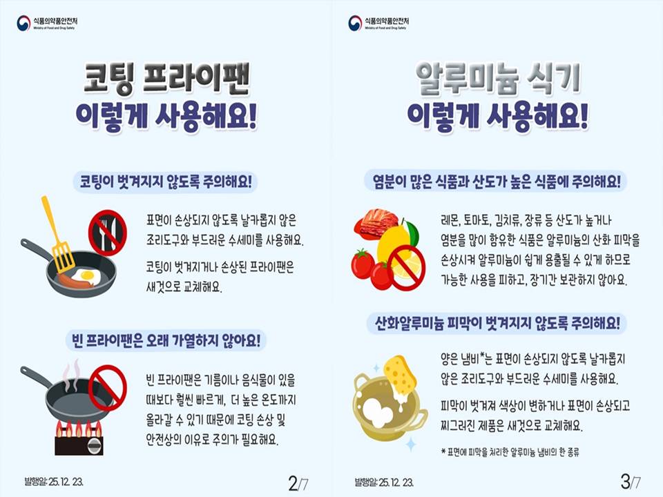 잘못된 사용 습관은 도구의 수명을 깎아먹을 뿐만 아니라, 우리 건강에도 영향을 줄 수 있습니다. 오늘은 식품의약품안전처의 가이드를 바탕으로, 코팅 팬, 알루미늄, 유리, 플라스틱 기구의 올바른 사용법과 교체 주기를 상세히 알려드릴게요!