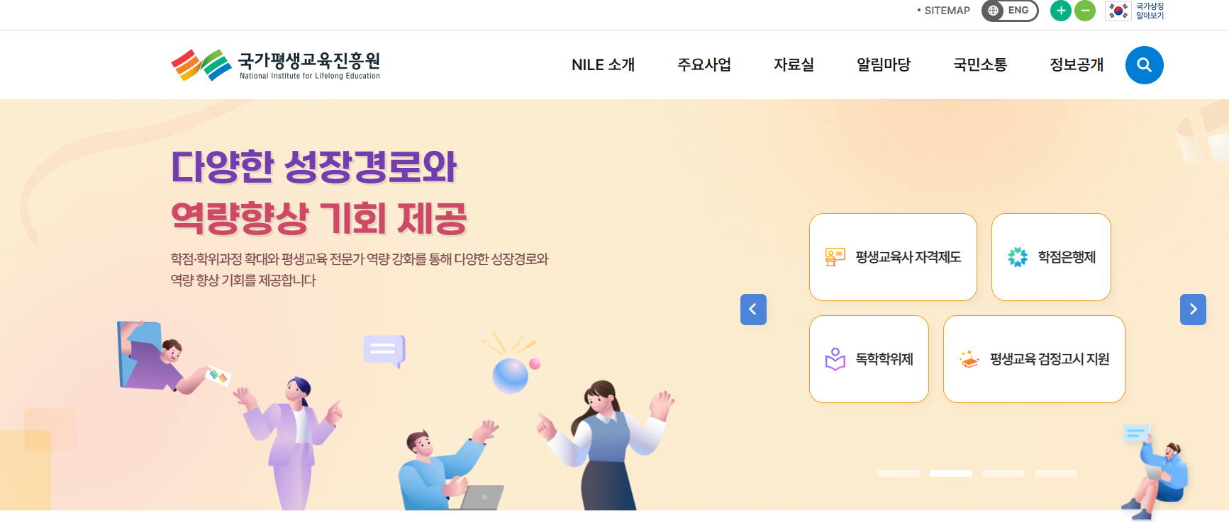 평생 직장이 사라진 시대, 학력 역시 한 번의 선택으로 고정되지 않습니다. 변화하는 노동 시장에서 나만의 경쟁력을 쌓고 싶다면, 이번 학점은행제 신청 기간을 적극 활용해 보세요. 여러분의 새로운 시작을 국가평생교육진흥원과 함께 설계해 보시길 바랍니다!