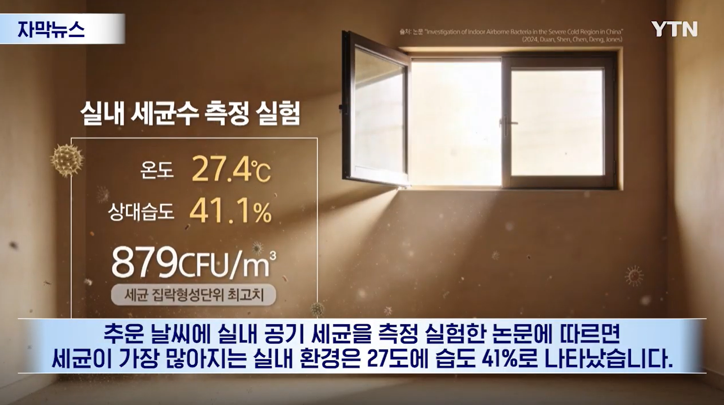 😷 겨울철 환기 필수! 실내 온도 27도·습도 41%가 세균 폭탄이 되는 이유