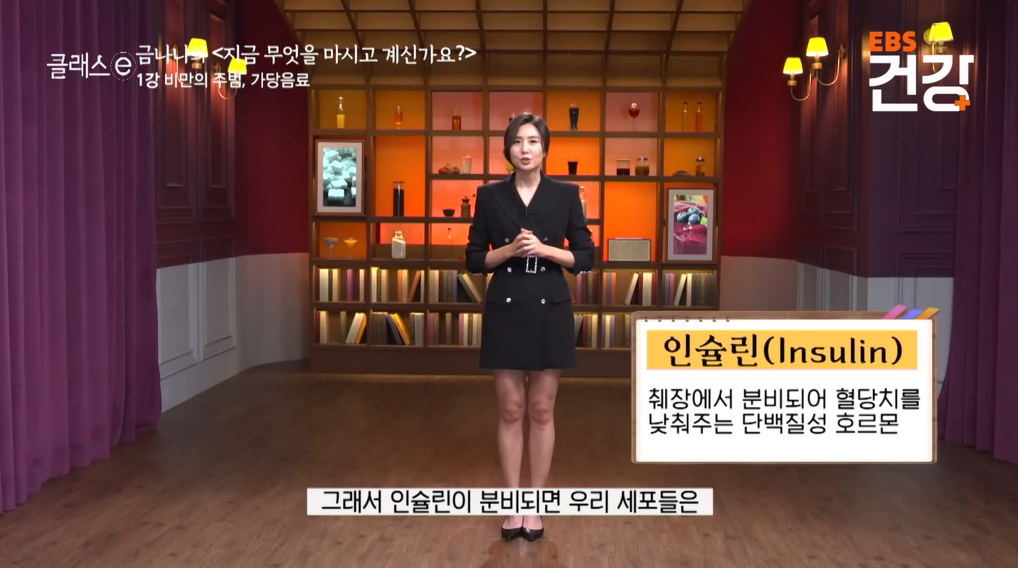 - 인슐린 폭발: 음료수에는 식이섬유가 거의 없어 당이 혈액 속으로 빛의 속도로 흡수됩니다. 이때 혈당을 낮추기 위해 분비되는 인슐린(일명 뚱뚱이 호르몬)은 혈액 속 영양분을 세포로 빨아들여 지방으로 축적합니다.