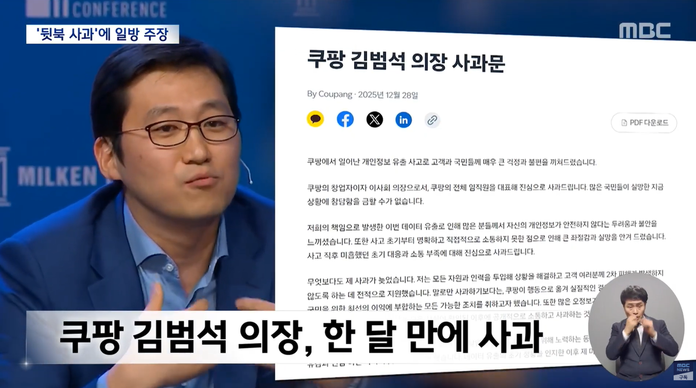 📦 [쿠팡 사태 속보] 김범석 의장, 한 달 만의 '늑장 사과'... 진정성 논란의 핵심 정리