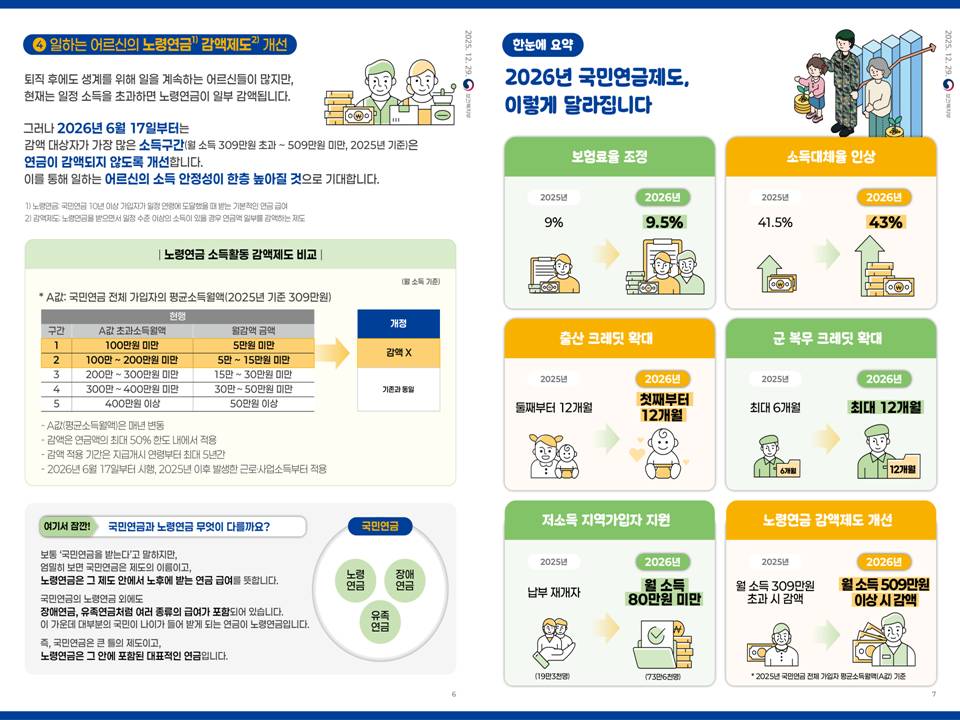 - 시행 시기: 2026년 6월부터 시행될 예정입니다. 이제 생계를 위해 소득 활동을 하더라도 연금액이 깎일 걱정을 덜 수 있게 되었습니다.