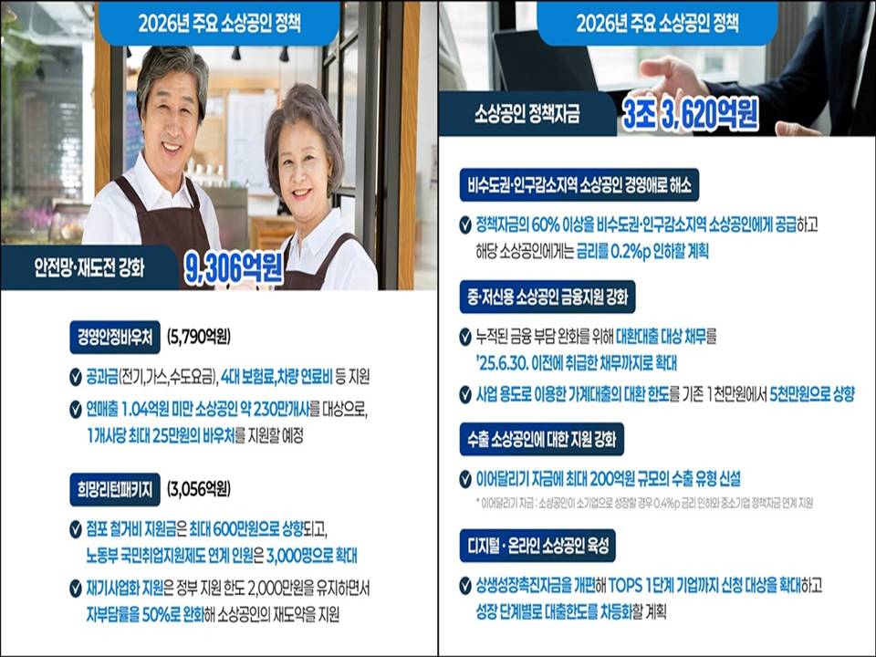 오늘은 '2026년 소상공인 지원사업 및 융자 통합 공고'의 핵심 내용을 완벽하게 분석해 드립니다. 사장님들의 경영 회복과 재도약을 위한 '필독 가이드', 지금 바로 확인하세요!