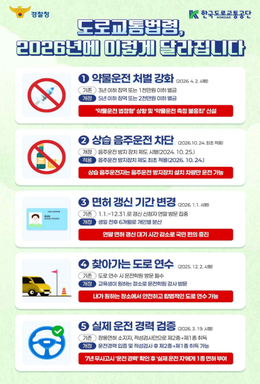 약물 운전 처벌 강화부터 운전면허 갱신 체계 변화까지, 운전자라면 반드시 알아야 할 5가지 핵심 변화를 파트별로 상세히 정리해 드립니다. 이 글 하나로 2026년 도로 위 안전 상식을 완벽하게 마스터하세요!