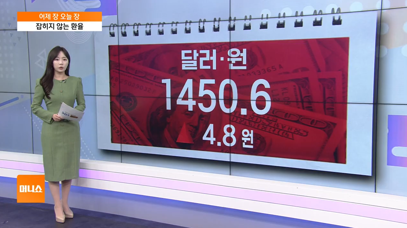 • 환율 최고치 경신: 어제 정규장 마감 기준 달러 환율은 1,450원 60전을 기록했습니다. 야간 거래에서는 한때 1,454원까지 치솟으며 긴장감을 고조시켰습니다.