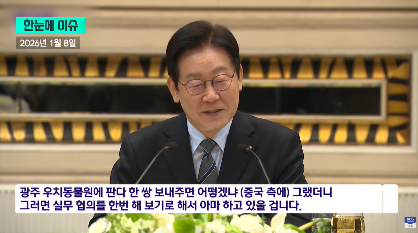 - 대통령의 한마디: "광주 우치동물원에 판다 한 쌍을 보내주면 어떻겠느냐"며 실무 협의를 직접 제안했고, 현재 정부 차원에서 발 빠르게 움직이고 있습니다.