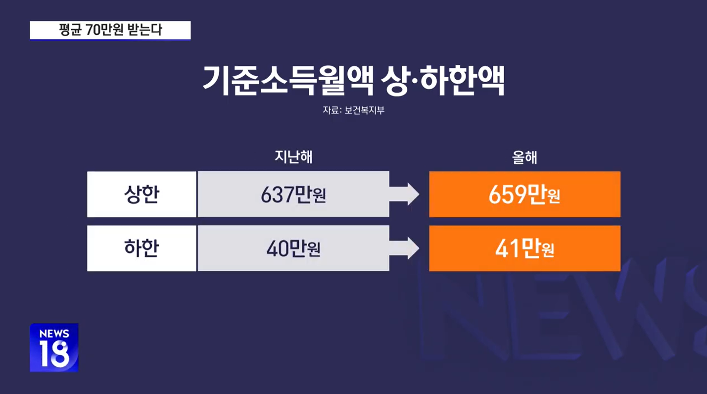 - 상한선: 기존 637만 원 → 659만 원 (22만 원 인상)