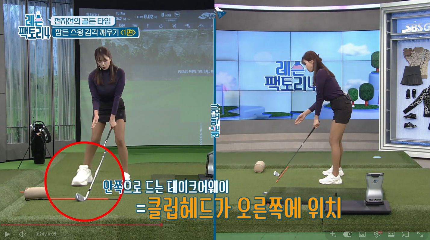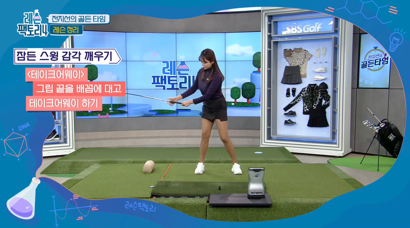 - 테이크백 점검 (3분): 배꼽에 그립 대고 궤도 확인하기.
