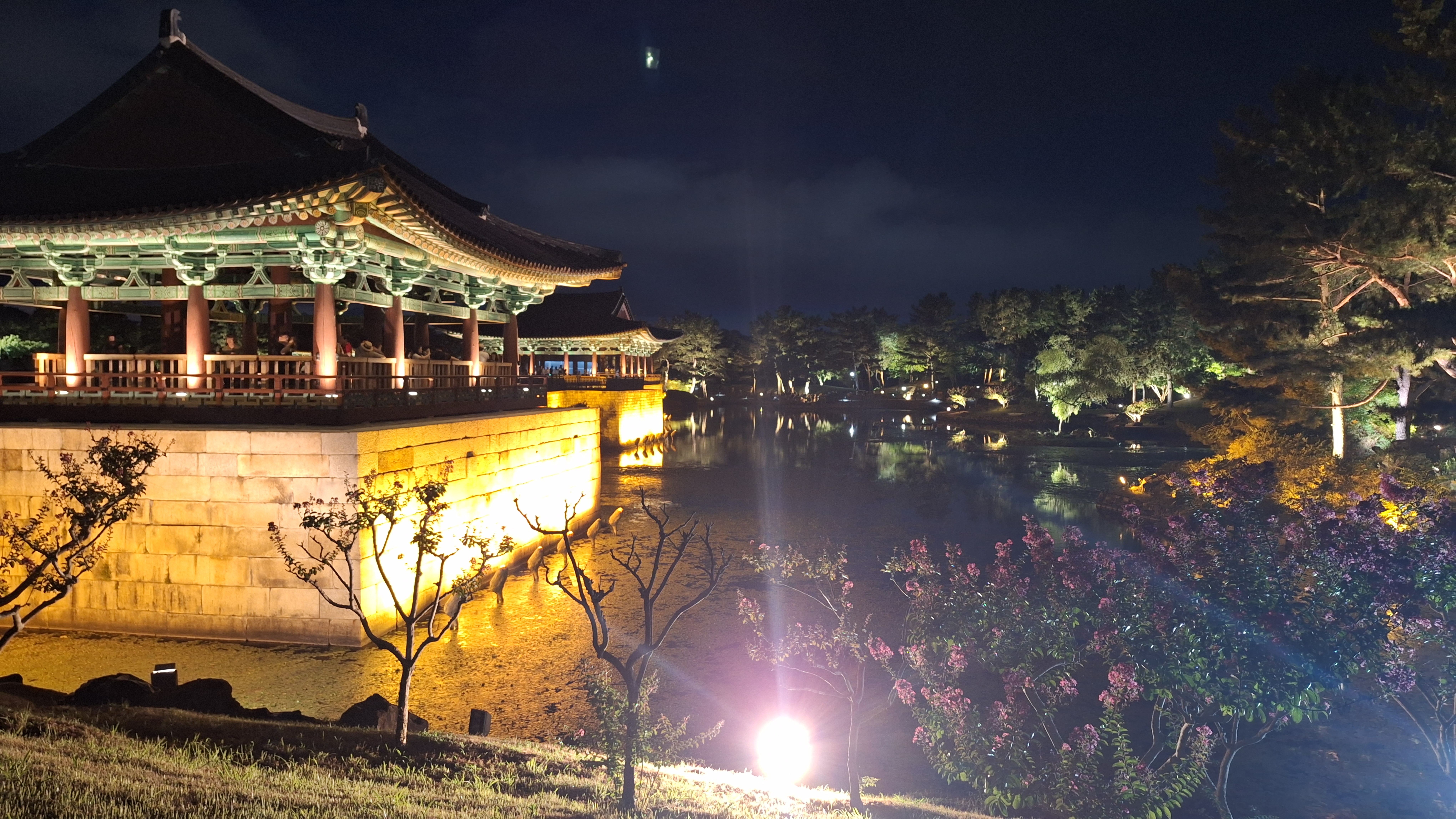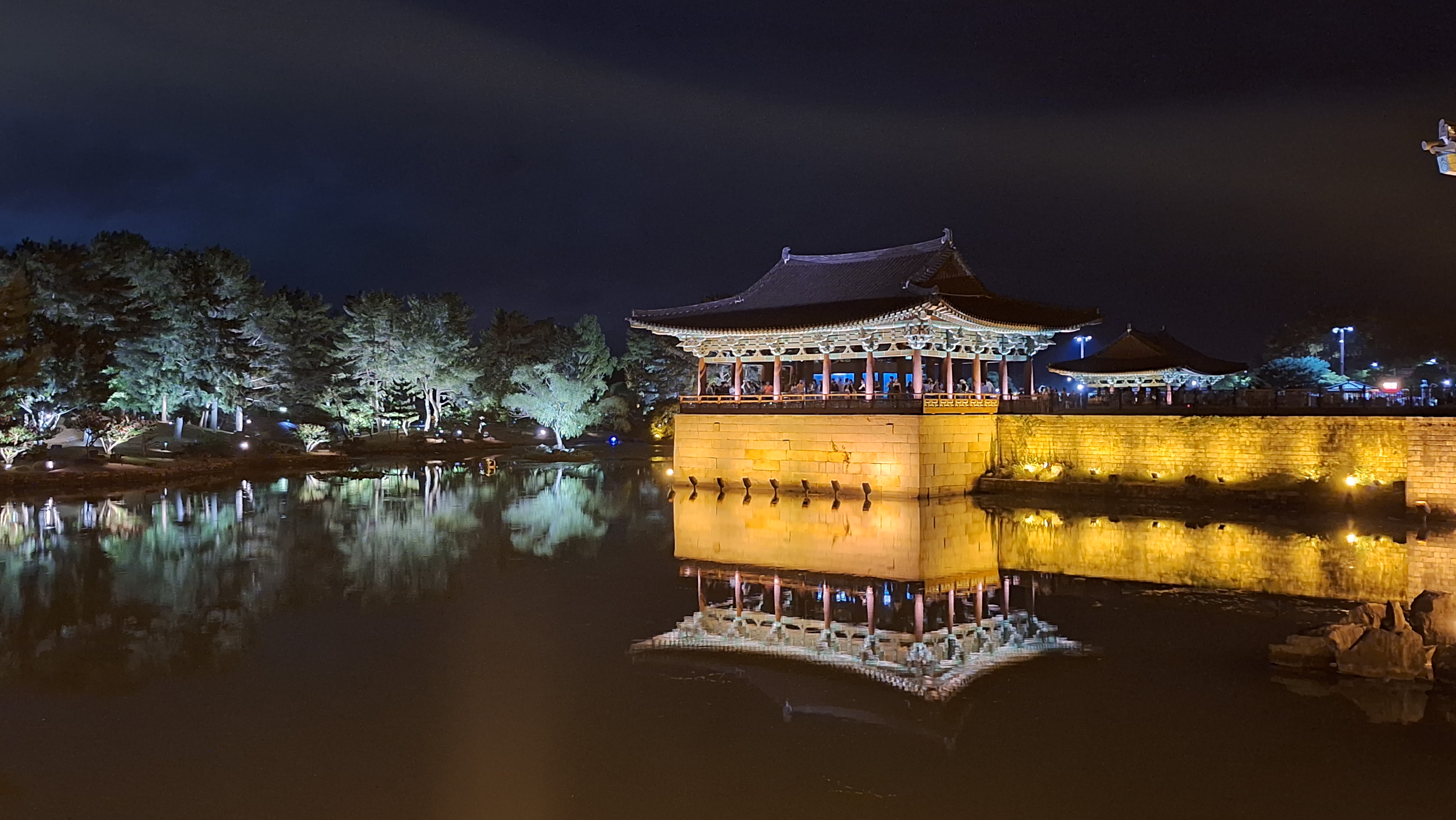 - 완벽한 데칼코마니: 월지의 고요한 수면 위로 조명을 받은 전각들이 거울처럼 선명하게 투영됩니다. 바람이 없는 날에는 어디가 실물이고 어디가 그림자인지 분간이 안 갈 정도로 신비롭습니다.
