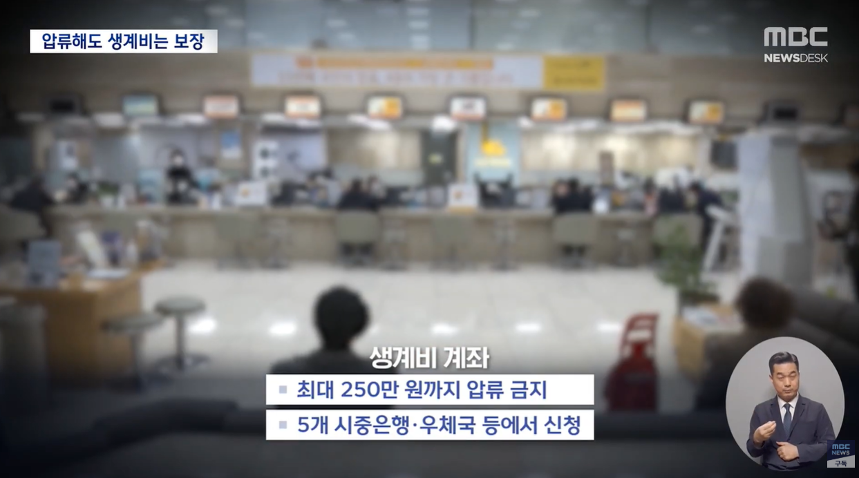 - 압류 금지 한도: 이번 달부터 출시된 생계비 통장은 한 달에 250만 원까지 압류를 금지합니다.