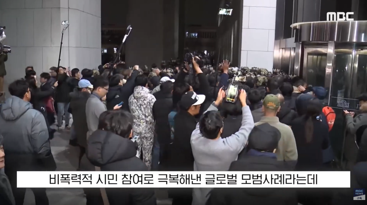 • 비폭력 시민 참여: 총칼과 장갑차 앞에서도 시민들은 '비폭력'을 외치며 민주주의 수호 의지를 보여주었습니다. 이것이 글로벌 모델이 되었다는 취지입니다.