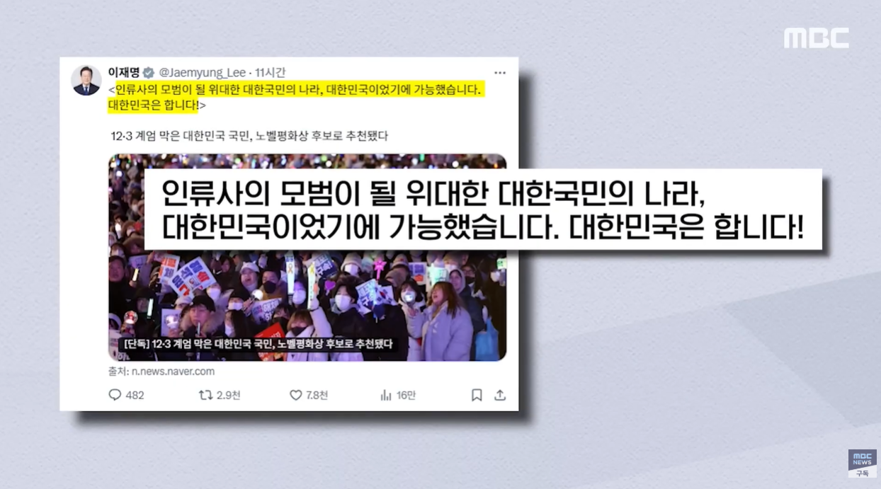 우리 국민 모두가 노벨상 후보라는 소식, 정말 자랑스럽지 않나요? "그날 밤 저도 국회 앞이었어요" 혹은 "우리 국민 정말 대단합니다" 등 여러분의 자랑스러운 목소리를 댓글로 들려주세요!