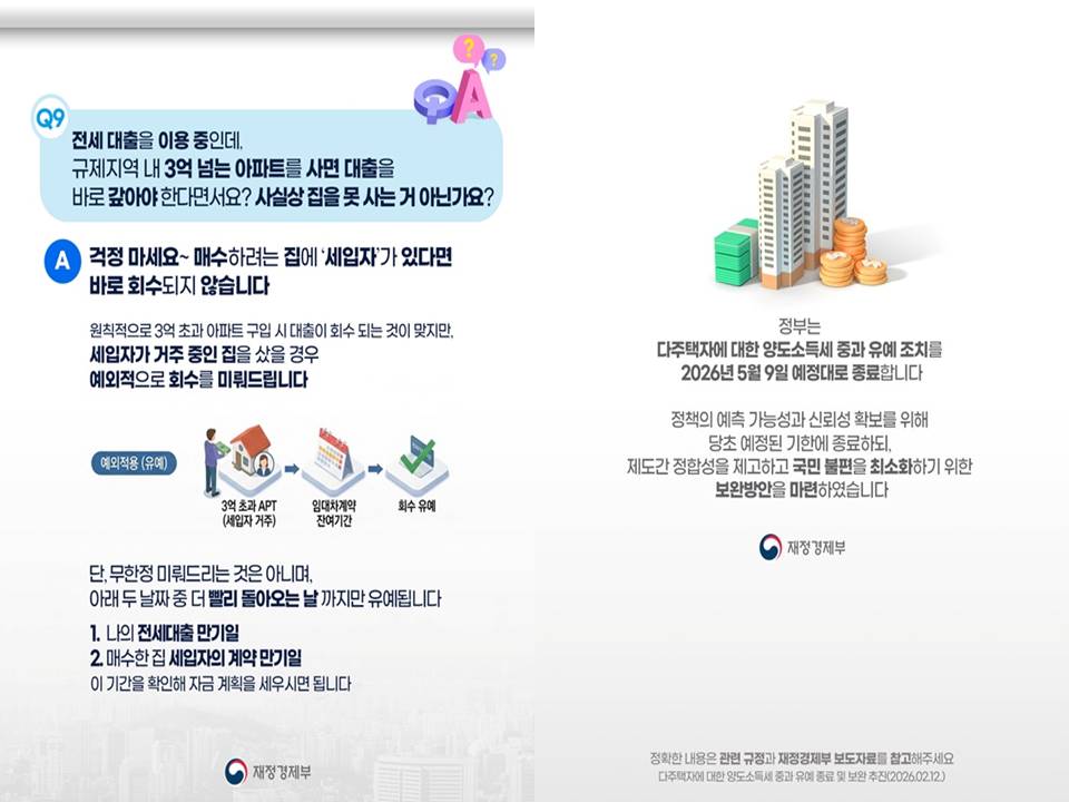 "이제 집 팔기 늦은 건가?", "전세 낀 집은 어떻게 사야 하지?" 등 혼란스러워하실 분들을 위해 정책의 핵심 보완 방안과 자주 묻는 질문들을 정리했습니다. 2월 12일 재정경제부 보도자료를 기반으로 한 실전 가이드, 지금 바로 확인하세요!