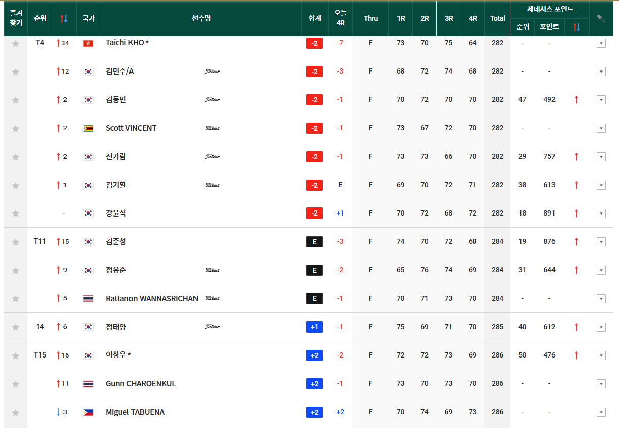 이번 대회에서 한국 선수 중 가장 좋은 성적을 거둔 것은 유송규였습니다. 2라운드까지 선두를 달리며 프로 데뷔 첫 우승을 노렸던 유송규는 최종 라운드 중반까지 선두 그룹을 2타 차로 추격했으나, 14번홀과 15번홀에서 연속 보기를 기록하며 우승 경쟁에서 멀어졌습니다.