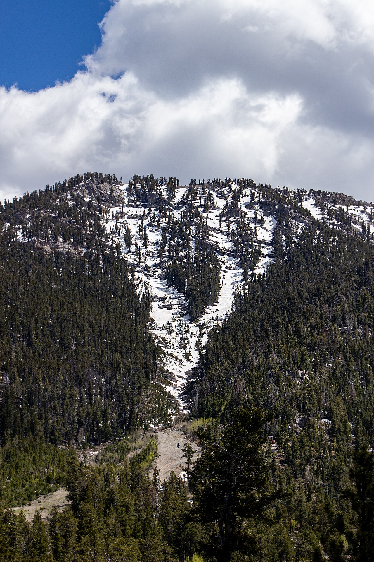 찰스턴 산의 정상, 찰스턴 피크(Mount Charleston Peak)는 해발 3,632m로 미국 본토에서 8번째로 높은 산 중 하나입니다. 사시사철 설경을 볼 수 있어 ‘만년설 산’이라는 별명도 있습니다.