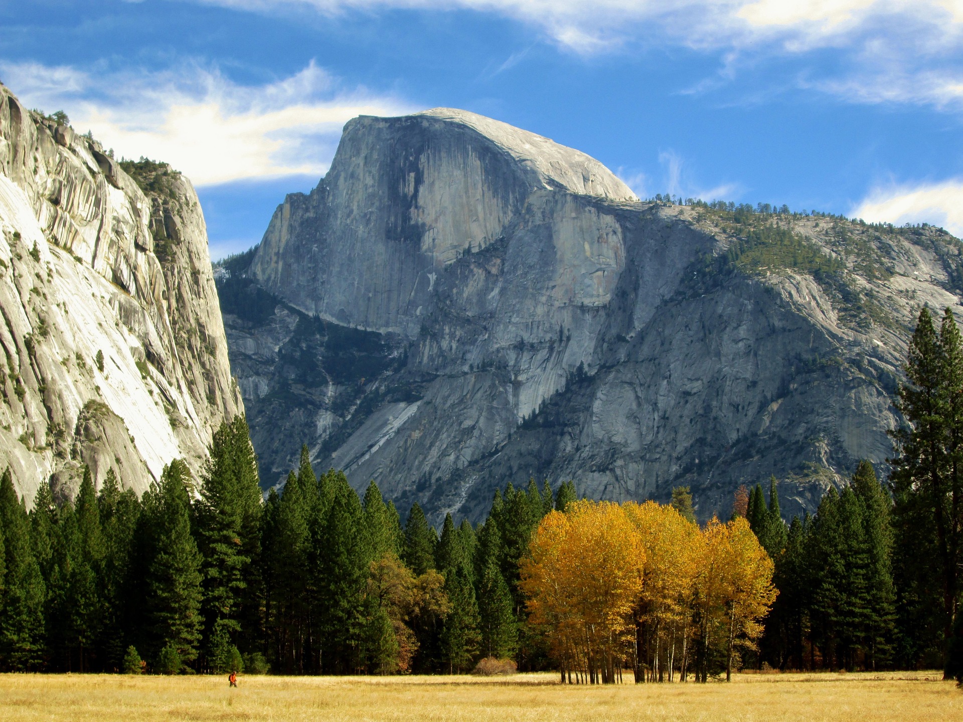 요세미티 밸리 내 여러 지점에서 다양한 각도로 하프 돔을 감상할 수 있습니다. 특히 밸리 내 초원과 숲을 배경으로 한 하프 돔의 모습은 사진작가들이 가장 선호하는 구도입니다.